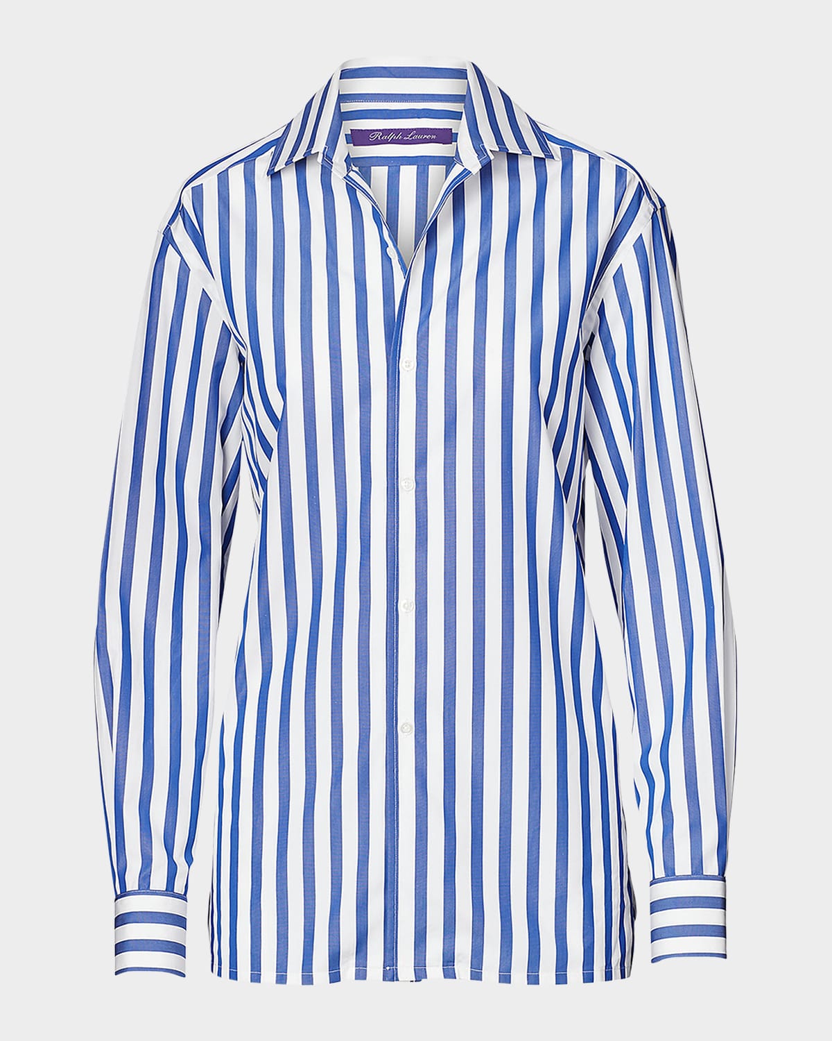 Ralph Lauren Collection Capri Striped Cotton Blouse White Neiman Marcus