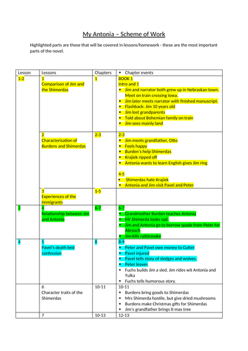 My Antonia Scheme Of Work And Resources Teaching Resources